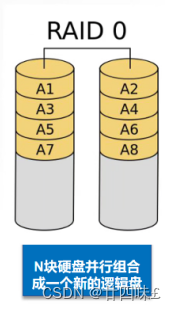 ●RAID 0只是单纯地提高性能,并没有为数据的可靠性提供保证,而且其中的一个磁盘失效将影响到所有数据