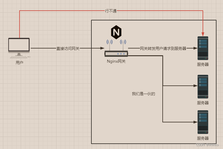 拿nginx实现的反向代理来说,不同于正向代理,反向代理的网关和服务器是一伙的,用户端无法通过公网直接访问到后台服务器上的Java应用程序,但是可以直接访问nginx网关,再由nginx分发到不同的服务器(或者说应用程序)上,真正提供服务的服务器对于用户来说是无感知的,所有的请求都必须先发送到nginx网关上,再进行请求转发,用户端并不知道真正提供服务的服务器是谁,也不知道它的具体ip地址和端口,所以称之为反向代理。