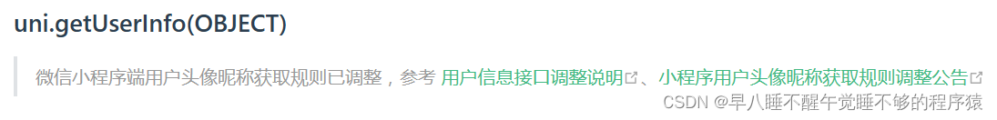 原来获取用户头像和昵称调用的是uni.getUserInfo(OBJECT)接口,但是2021年4月28日24时后发布的小程序新版本,无法通过uni.getUserInfo与获取用户个人信息(头像、昵称、性别与地区)