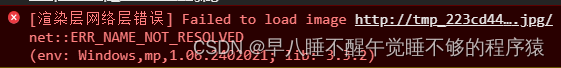 但是这只是微信的一个临时文件,如果直接将这段路径以字符串的形式存储到后端服务器,那下次获取到头像的时候可能该临时文件已经失效,导致头像无法正常渲染,失效时返回的路径是wxfile://tmp_223cd440990786c338a5610060d4e96aeda77d2678920.jpg,这样的文件在渲染时会出现下图所示的报错