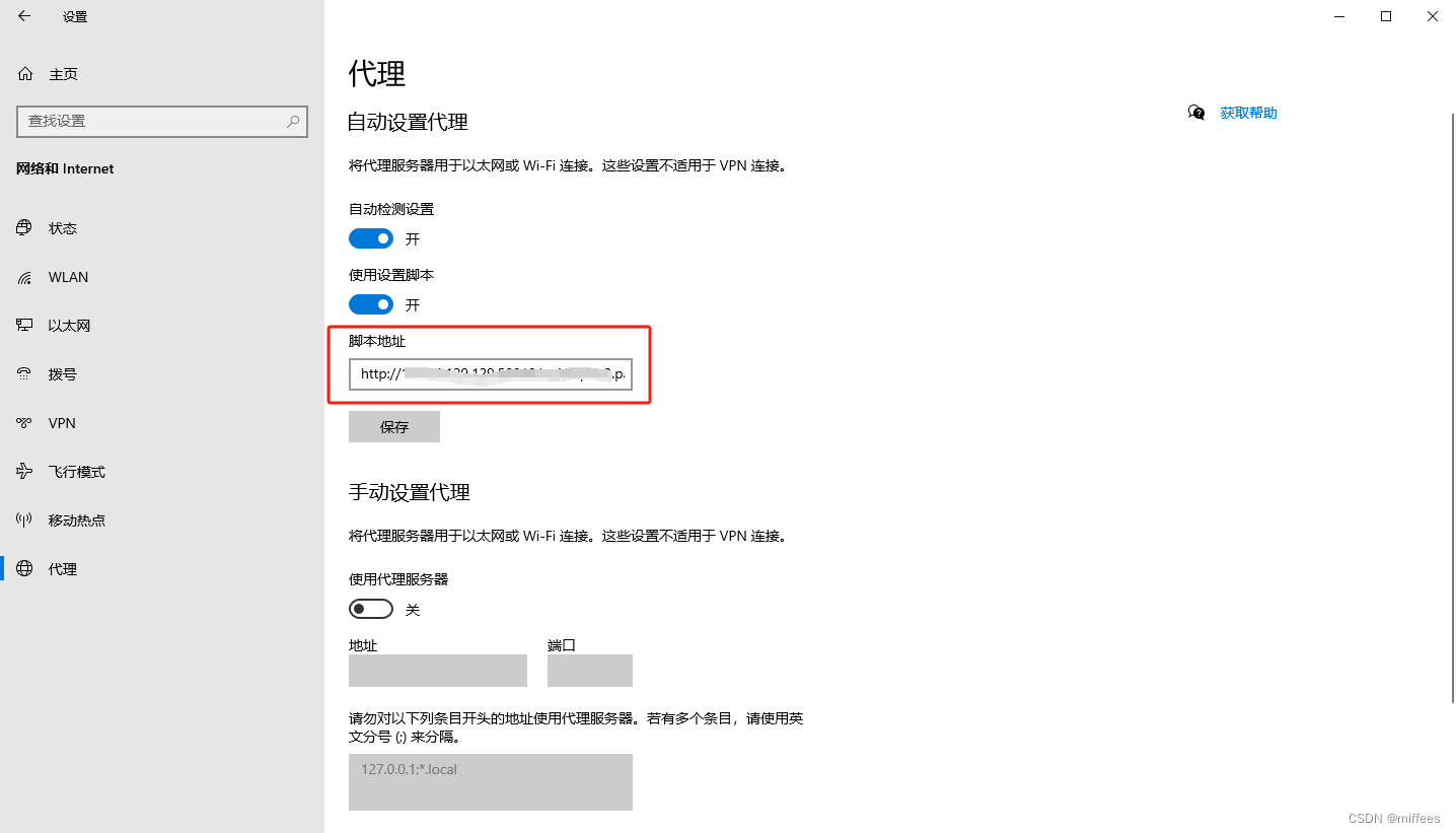 然后在某个vpn配置中,给自己电脑的网络配置中加了一个代理,如图