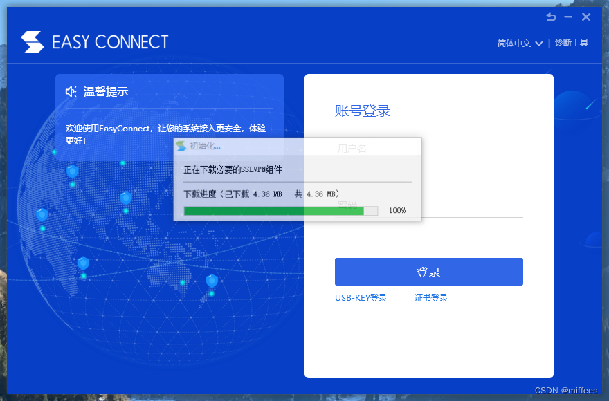 然后一直进行,控制面板卸载 EasyConnect,然后安装,安装完成登陆不上,又下载的循环困境。没有找到原因。