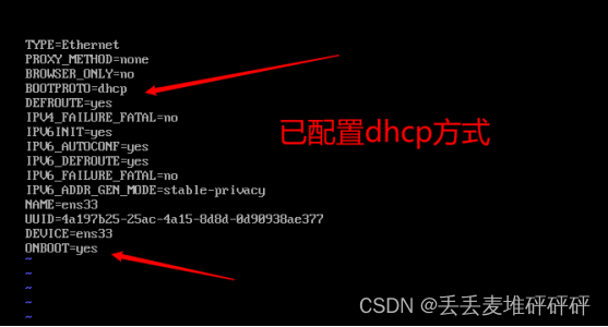 编辑ifcfg-ens33这个文件,通过vi编辑器进行修改,输入如下命令并回车:
