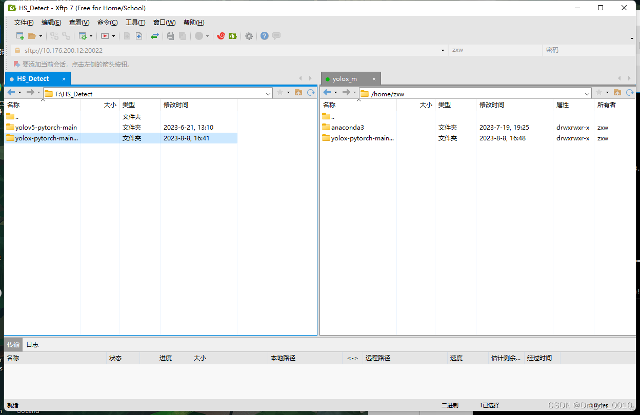 将本地的文件夹直接拖拽到右边服务器中,即可完成文件的上传