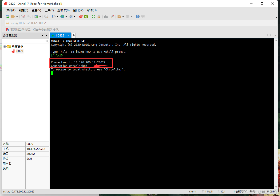 出现Connection established表示连接成功