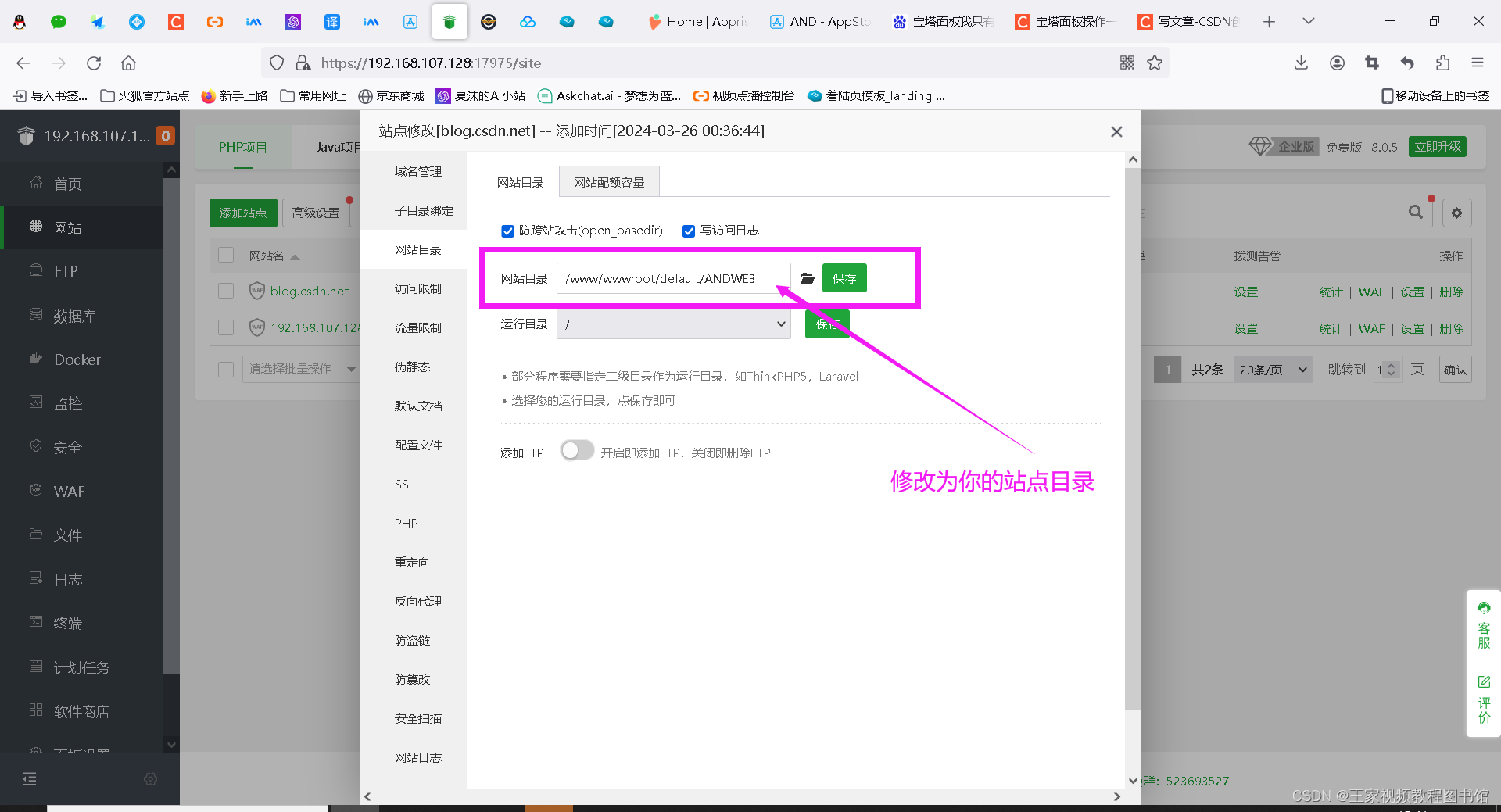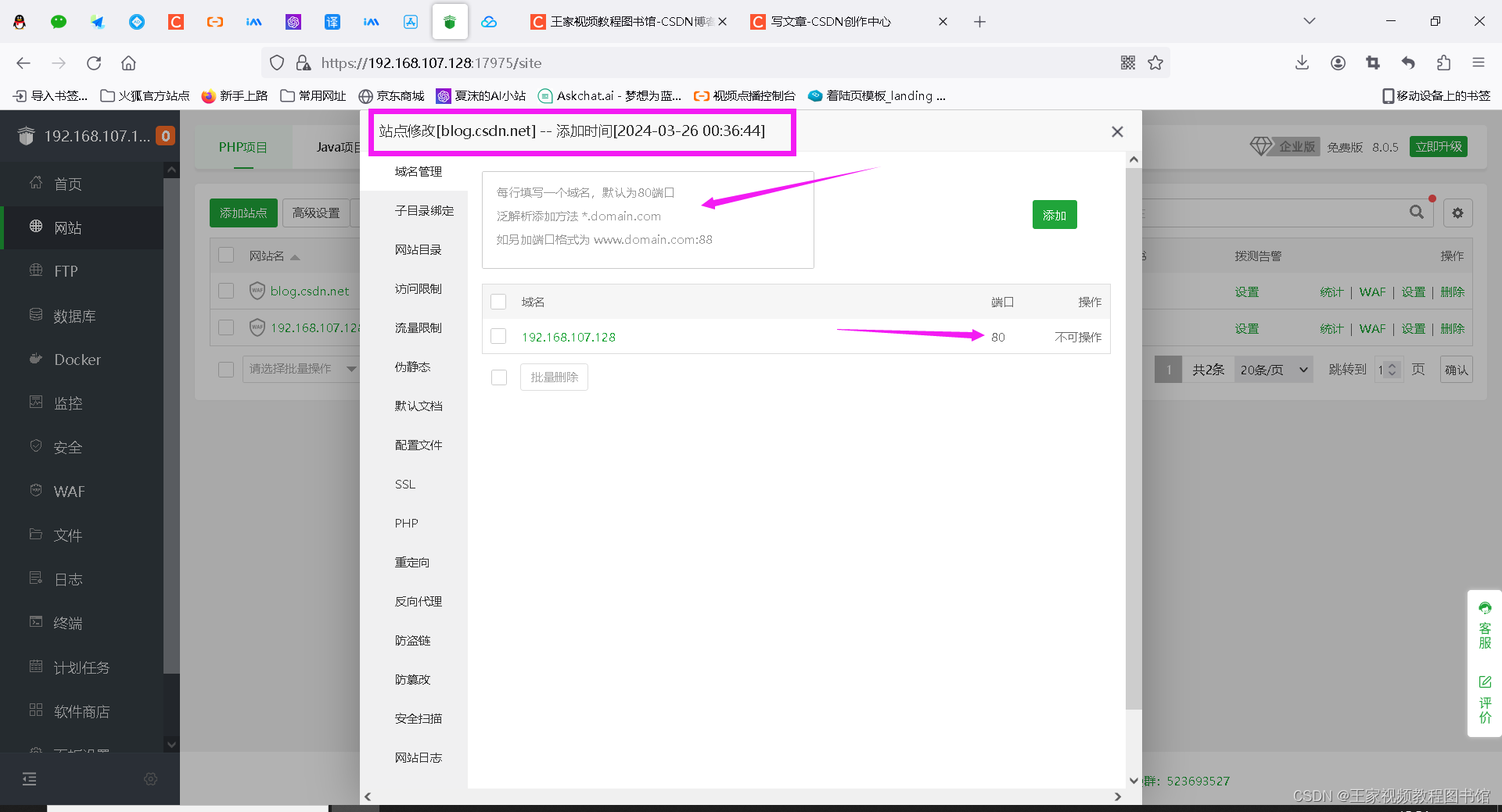 进入新创建的网站点的设置,然后添加一个域名,这个域名是你的IP加端口号(xx.xxx.xxx.xx:81),这里端口号设置为81(你自己可以选择其他的),这里一定要注意要在你的服务器防火墙开放81端口!不然网站登不上的