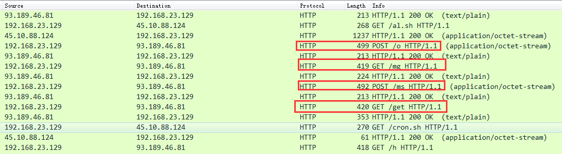随后攻击者通过执行远程命令在Redis目录(/www/server/redis/)中下载了三个可执行文件并运行,文件名为kinsing+“10个随机字符”: