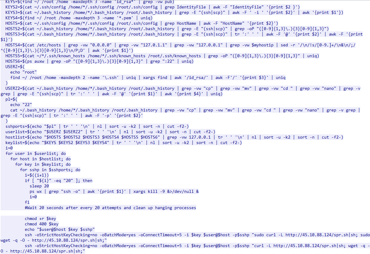 下载http[:]//45.10.88.124/spre.sh,尝试利用SSH连接复用进行横向移动: