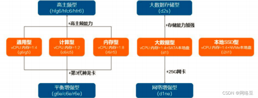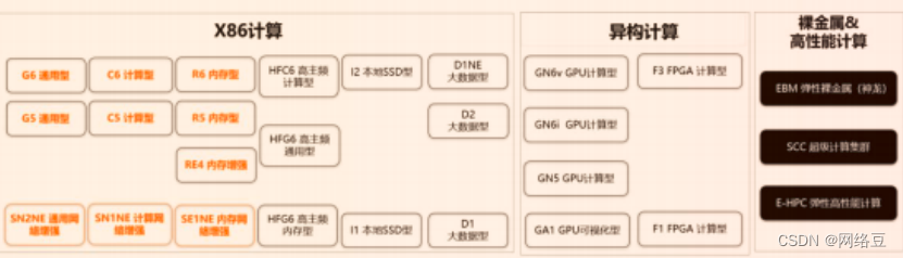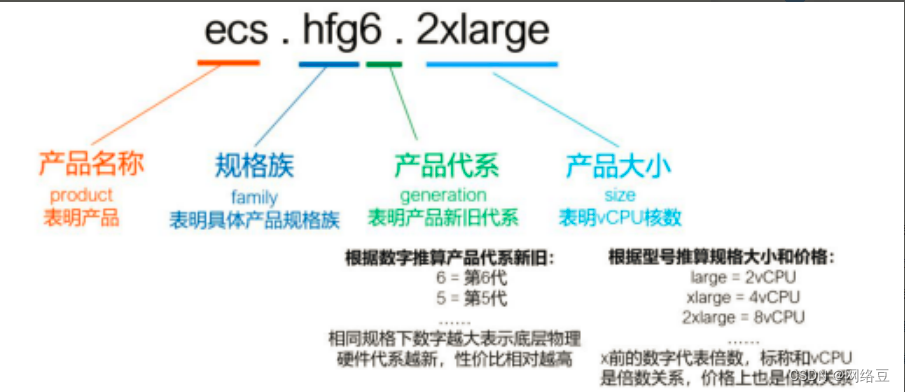 通过下图能够看到阿里云实例规格的命名方式和规律