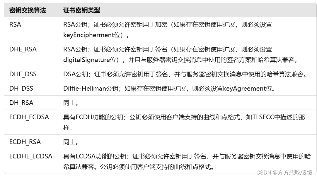 随着为TLS协议指定新密钥交换方法的密码套件的引入,它们将暗示证书格式和所需的编码密钥信息。