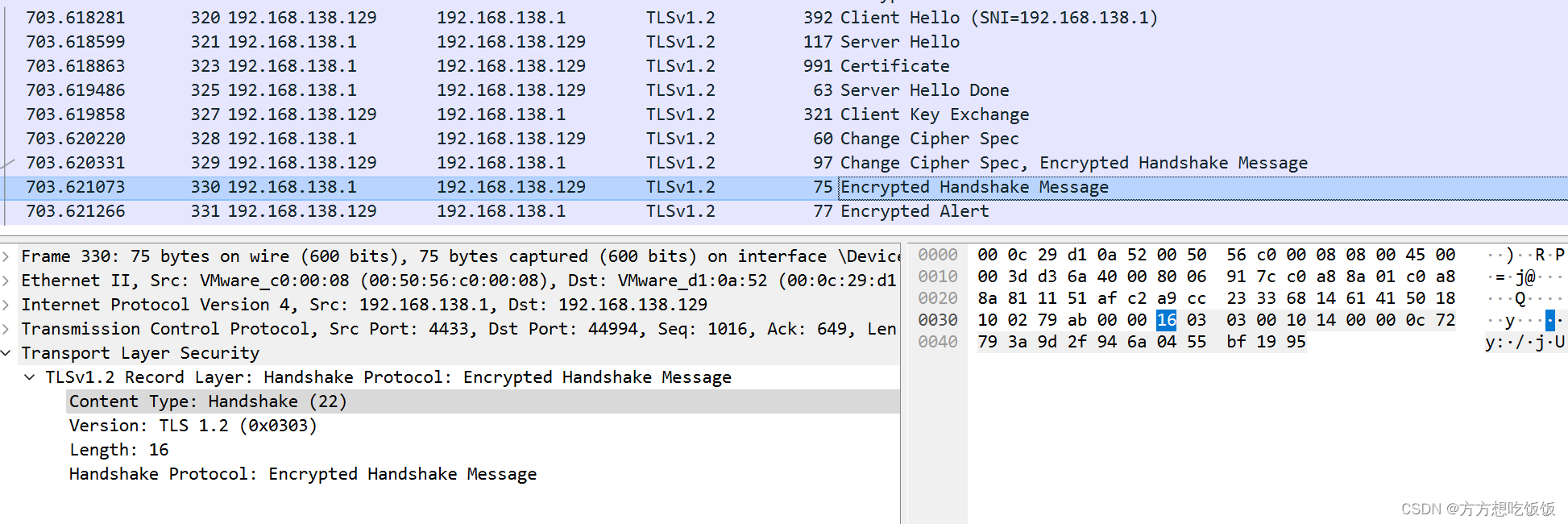注意:ChangeCipherSpec 消息、警报和任何其他记录类型不是握手消息,因此不包括在哈希计算中。