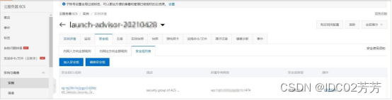 4、在实例详情页面,单击安全组,在安全组列表区域,单击对应的安全组ID。