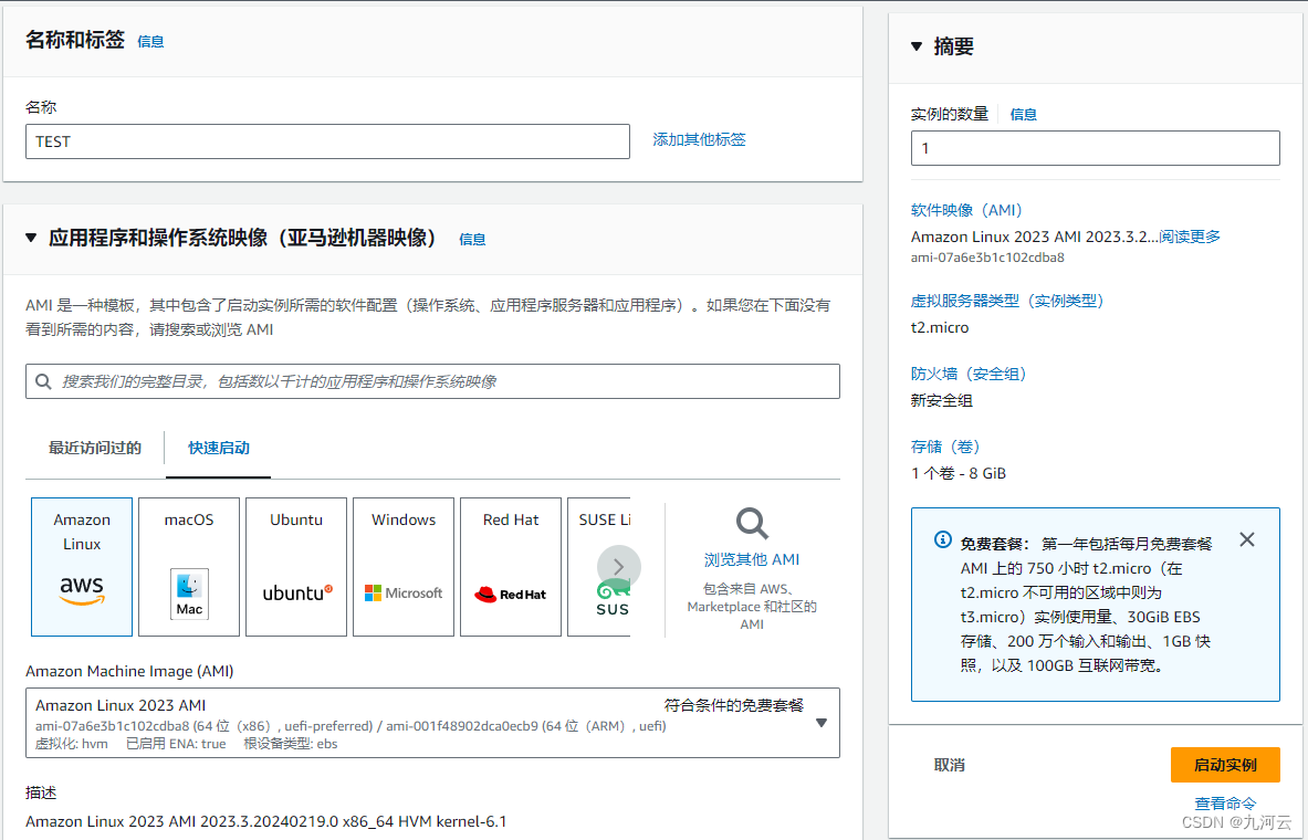 在该界面进行配置服务器名称、选择AMI镜像等。