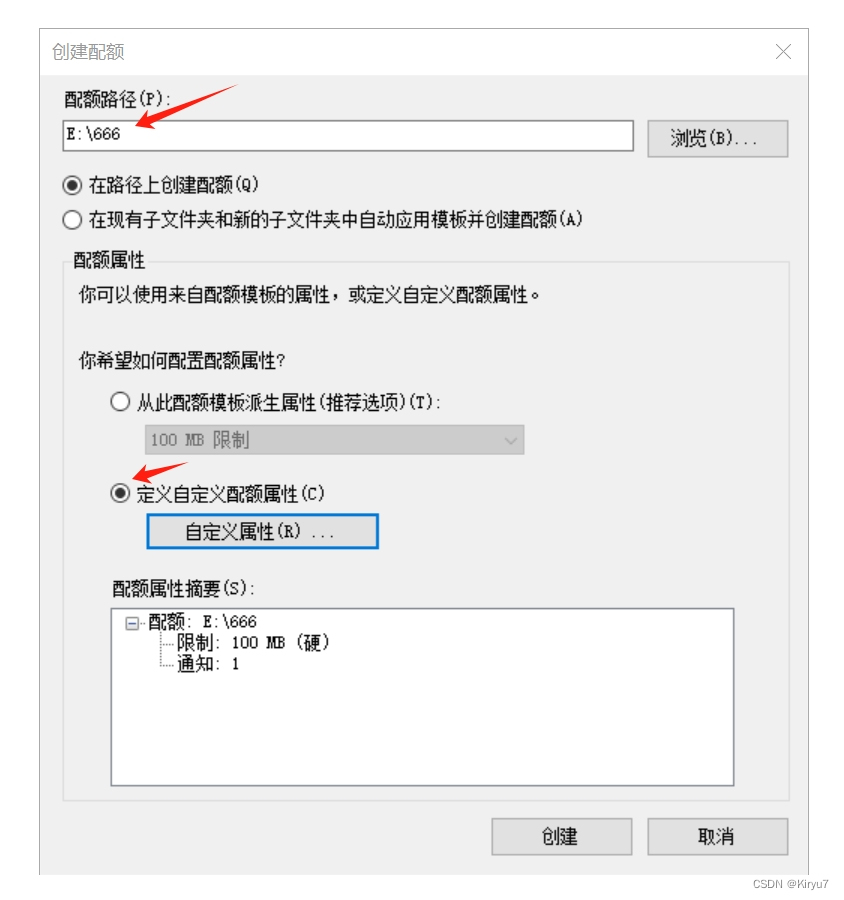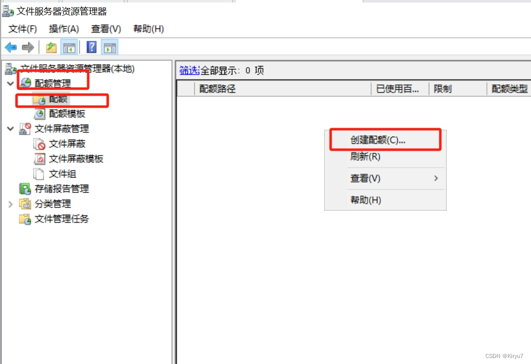 打开文件服务器资源管理器===》配额管理===》配额===》右键创建配额