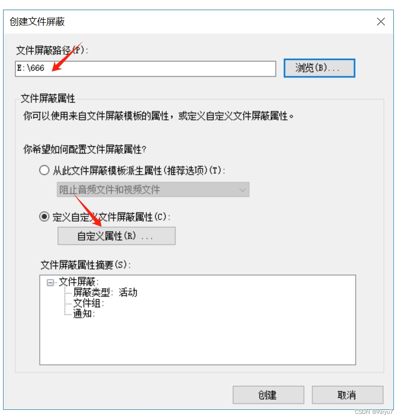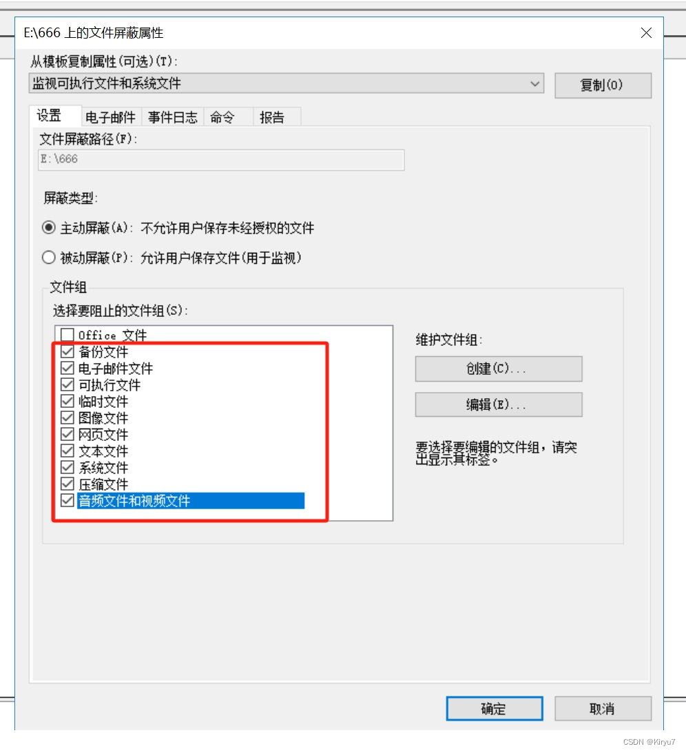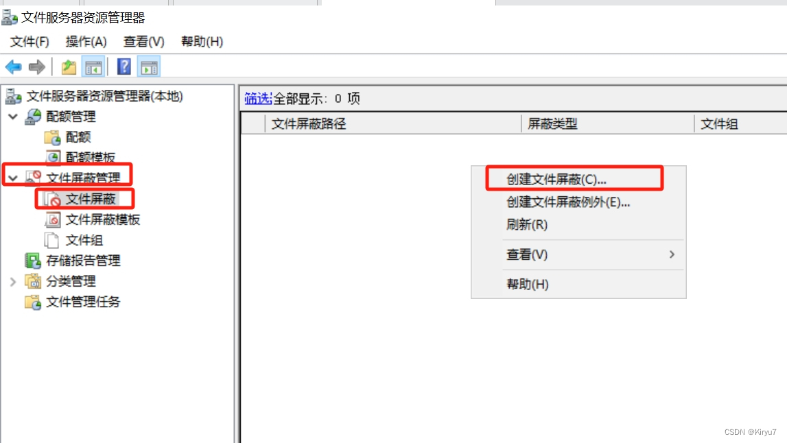 打开文件服务器资源管理器===》文件屏蔽管理===》文件屏蔽===》右键选择创建文件屏蔽