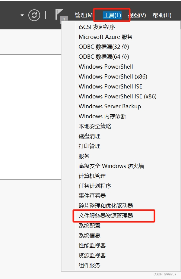 打开服务器管理器===》点击工具===》文件服务器资源管理器