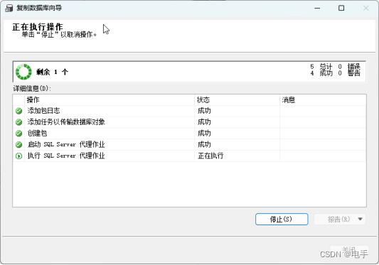 对于大量数据,最安全的方法是 备份 SQL数据库并恢复到另一台服务器。它比其他方法更不容易出错,但在迁移数据库时也需要停机。因此,如果您无法承受任何停机时间,请选择方法 2 并使用“SQL 管理对象”模式复制数据库。