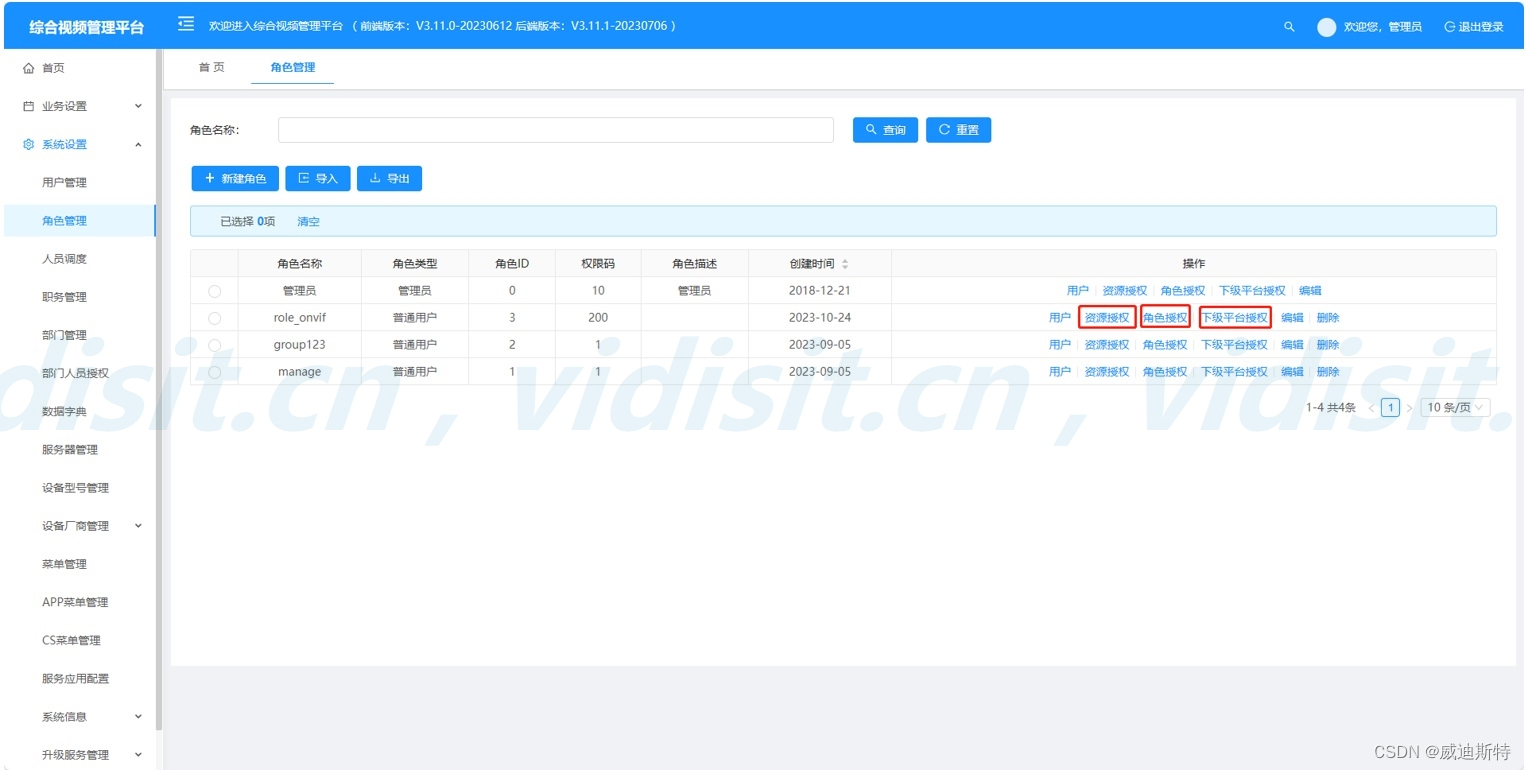 点击系统设置界面进入角色管理,按照实际情况添加新建角色。并按照实际情况进行这三步授权。