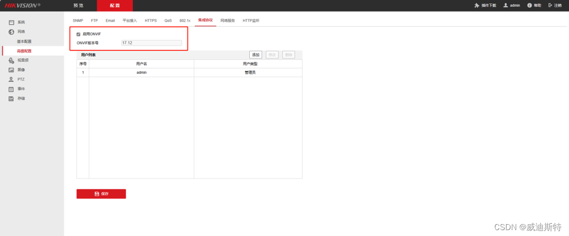 登录连接的设备的管理界面,查看该设备是否支持onvif协议且打开该协议。平台只能连接支持且打开该协议的设备通过onvif协议接入平台。