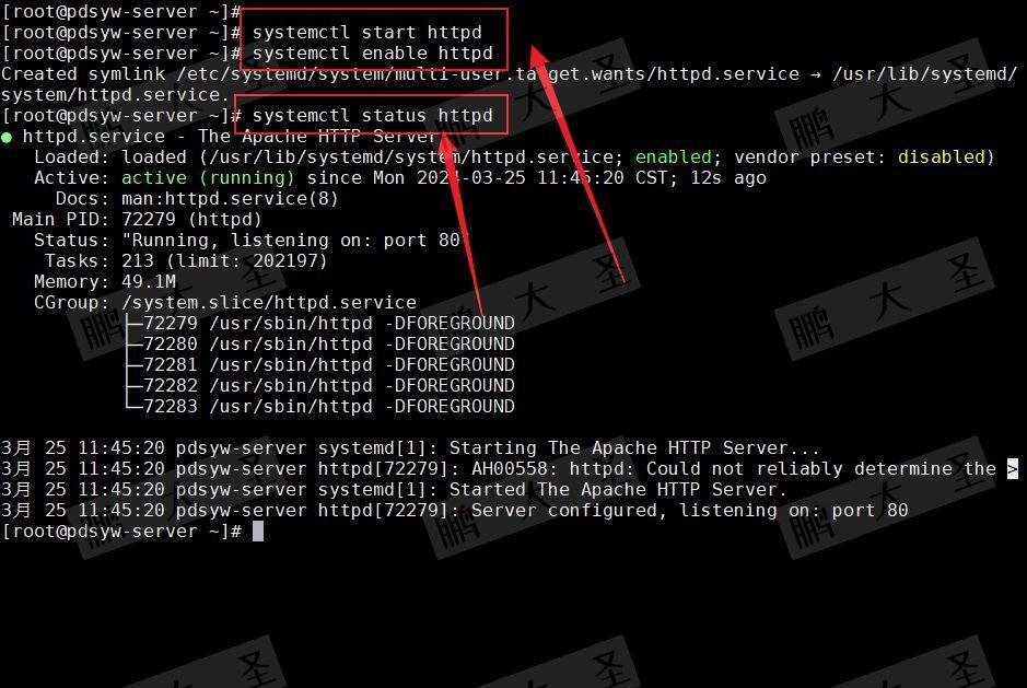 [root@pdsyw-server ~]# systemctl start httpd [root@pdsyw-server ~]# systemctl enable httpd [root@pdsyw-server ~]# systemctl status httpd
