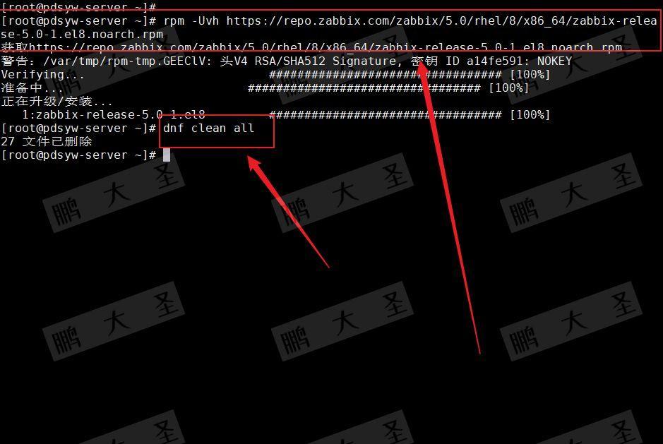 [root@pdsyw-server ~]# rpm -Uvh https://repo.zabbix.com/zabbix/5.0/rhel/8/x86_64/zabbix-release-5.0-1.el8.noarch.rpm [root@pdsyw-server ~]# dnf clean all
