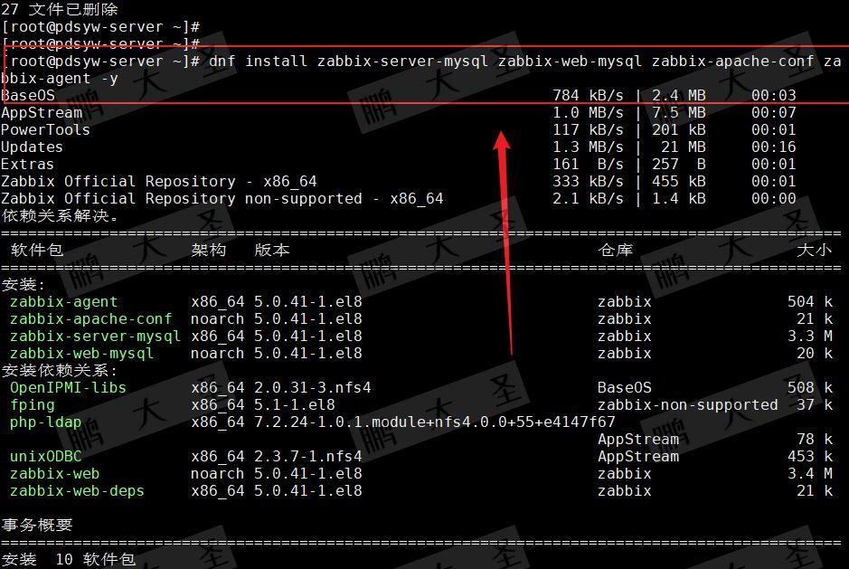 [root@pdsyw-server ~]# dnf install zabbix-server-mysql zabbix-web-mysql zabbix-apache-conf zabbix-agent -y