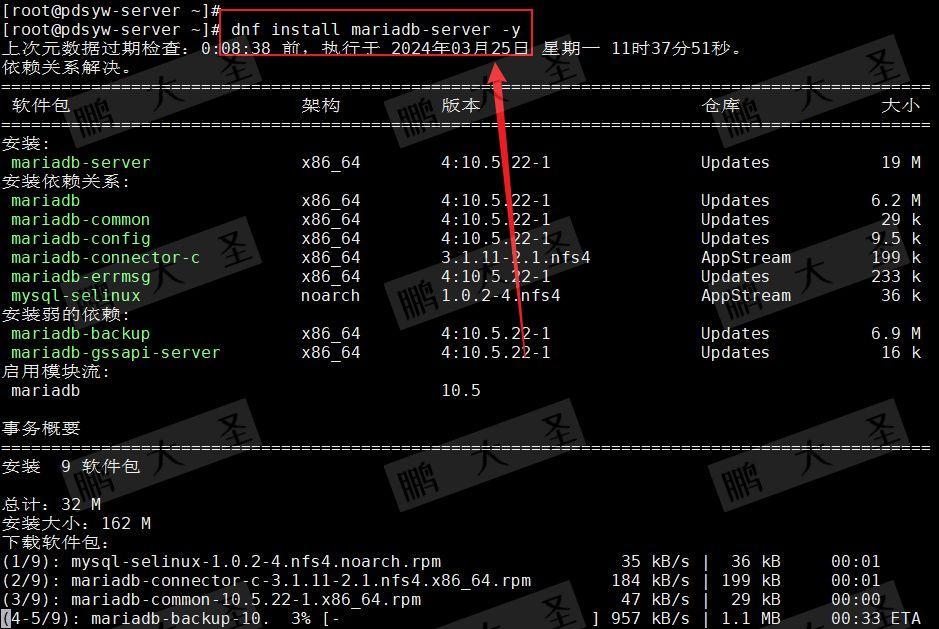 [root@pdsyw-server ~]# dnf install mariadb-server -y