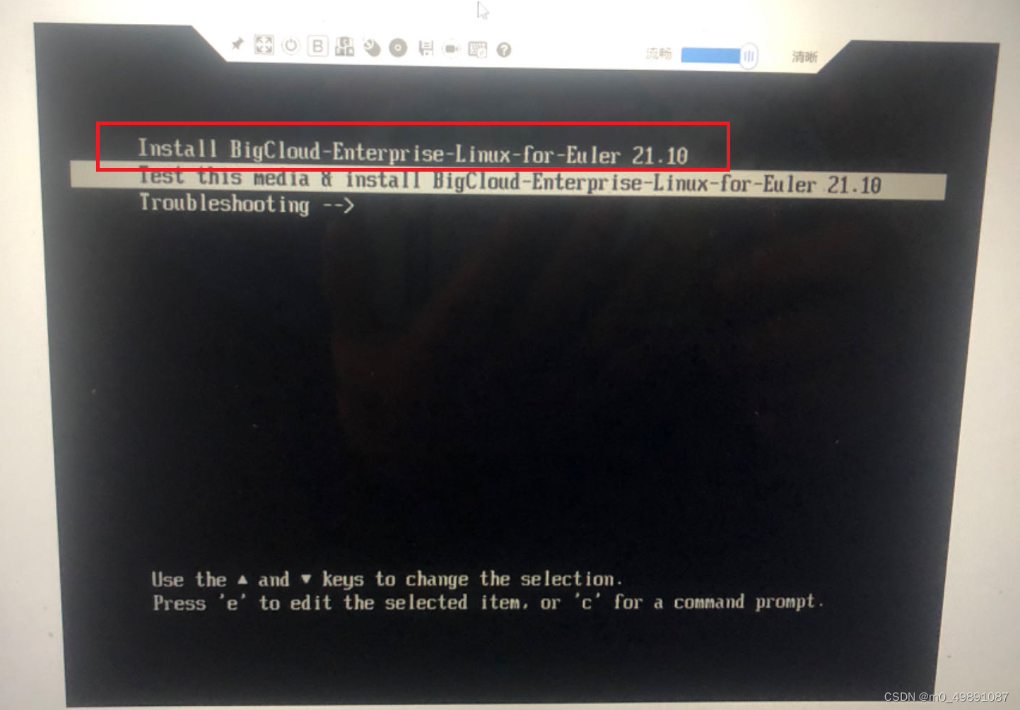使用的是鲲鹏处理器(kunpeng)服务器,安装BCLinux-for-Euler-21.10-dvd-aarch64-220620.iso