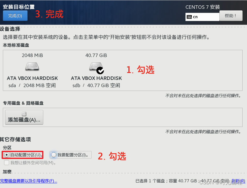 4) 安装位置 我这里选择自动分配,做服务器不需要犹豫太多,简单方便。当然,也可以选择手动分配。