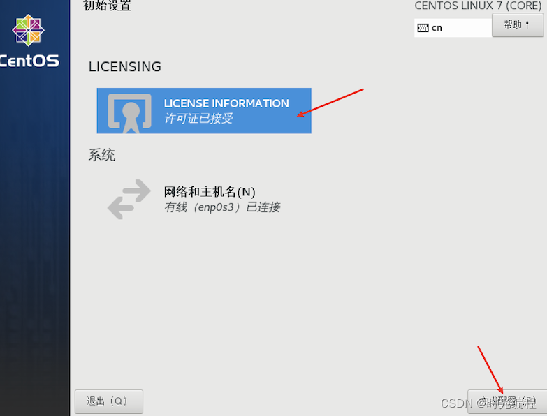 安装完成后进入正常的Centos7的页面。选择语种、连接网络等。