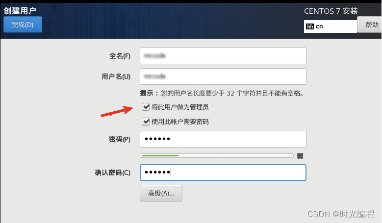 勾选称为管理员,可以使用自己的密码来切换身份成为管理员,而不用知道 root 的密码, 即使 root 的密码忘记了,还可以切换身份变成 root