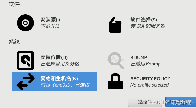 3) 软件选择:GUI 有个简单的图形界面 ,最小安装则开机终端指令界面,好多初始配置没有安装。需要自行配置,消耗时间。