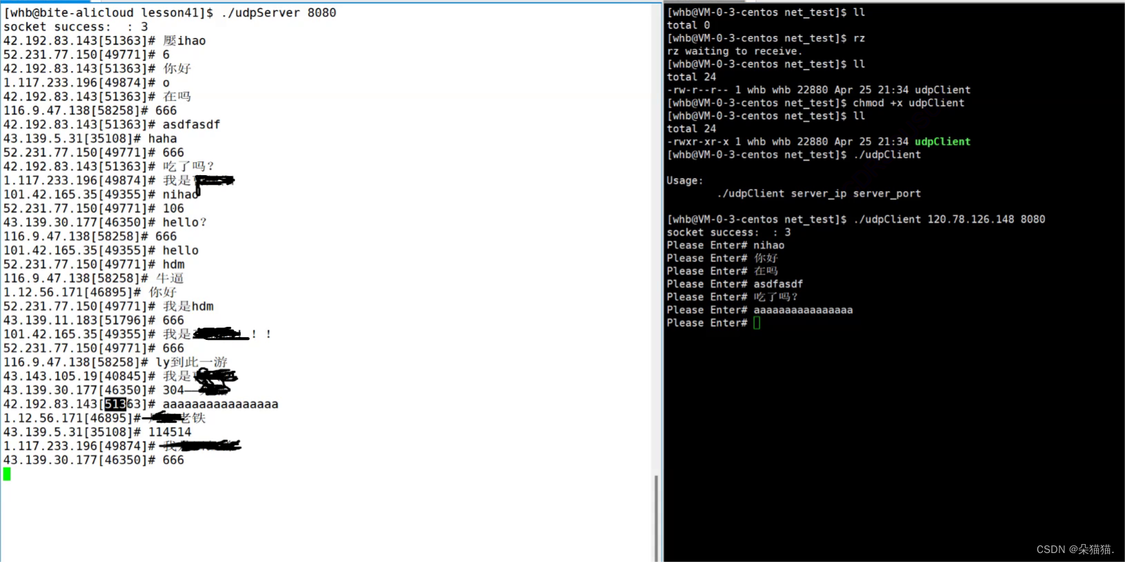 void InitClient() { // 1.创建socket _sockfd = socket(AF_INET,SOCK_DGRAM,0); if (_sockfd==-1) { cerr<<"socket error: "< 我们客户端的代码很简单,相比服务端客户端是不需要明确的去bind的,这是因为服务端必须要有指定的不能随意改变的端口,这样我们的客户端才能找到服务端,就像110一样,110这个电话是不能随意更改的,但是对于用户端自己来讲,我自己是什么样的端口不重要,我只需要通过服务端的端口访问服务端。所以我们一定要注意:客户端需要bind,但是不需要程序员明确的bind,这里我们自己不bind,操作系统察觉到我们没有绑定后会自动帮我们绑定,并且每次绑定的端口号都是随机的。