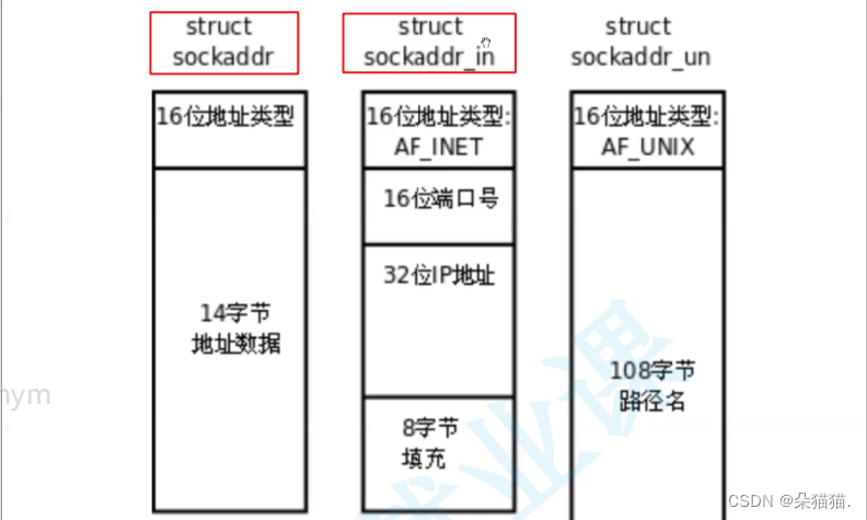 注意我们用的IPV4协议要用sockaddr_in这个结构,但是接口参数是sockaddr*这个结构,所以我们用的时候要做一下强制类型转换。可以看到我们的这个结构有4个位置需要我们填充,第一个AF_INET代表协议家族,第二个是端口号,第三个是IP地址,第四个是这个结构体的大小。