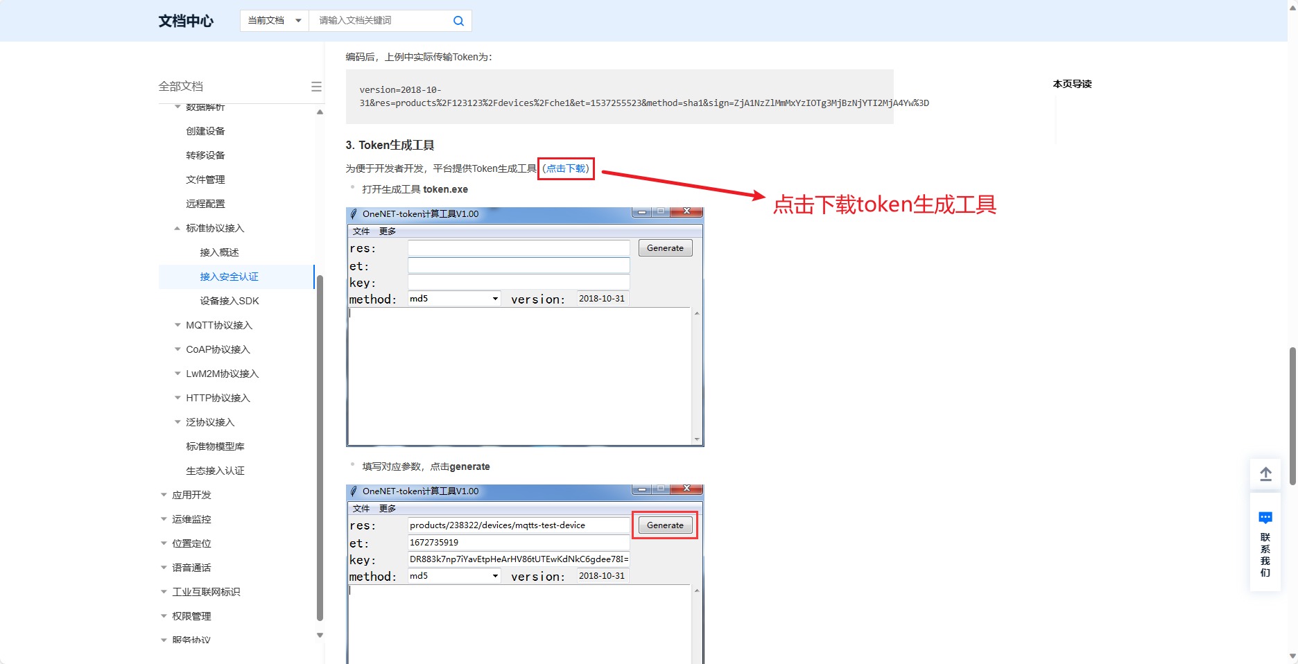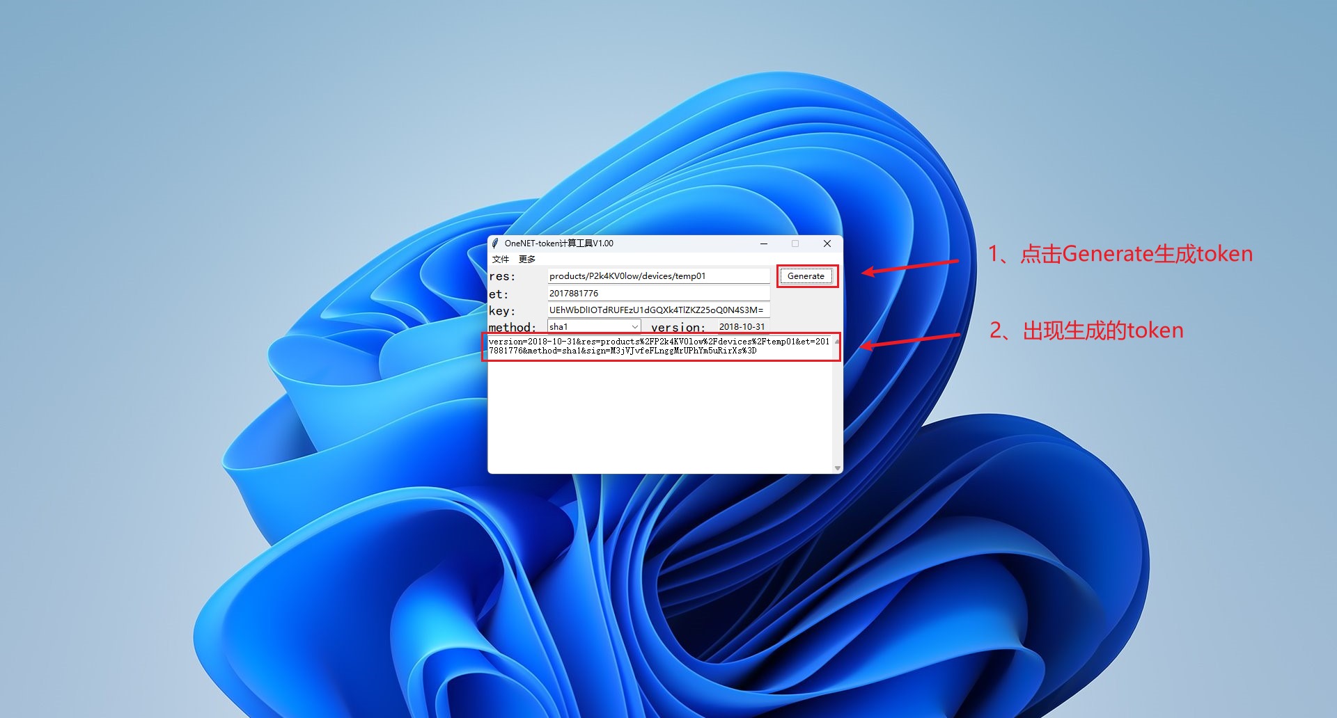 设备密钥需要经过加密,加密需要用 OneNET 官方的 token 生成工具。