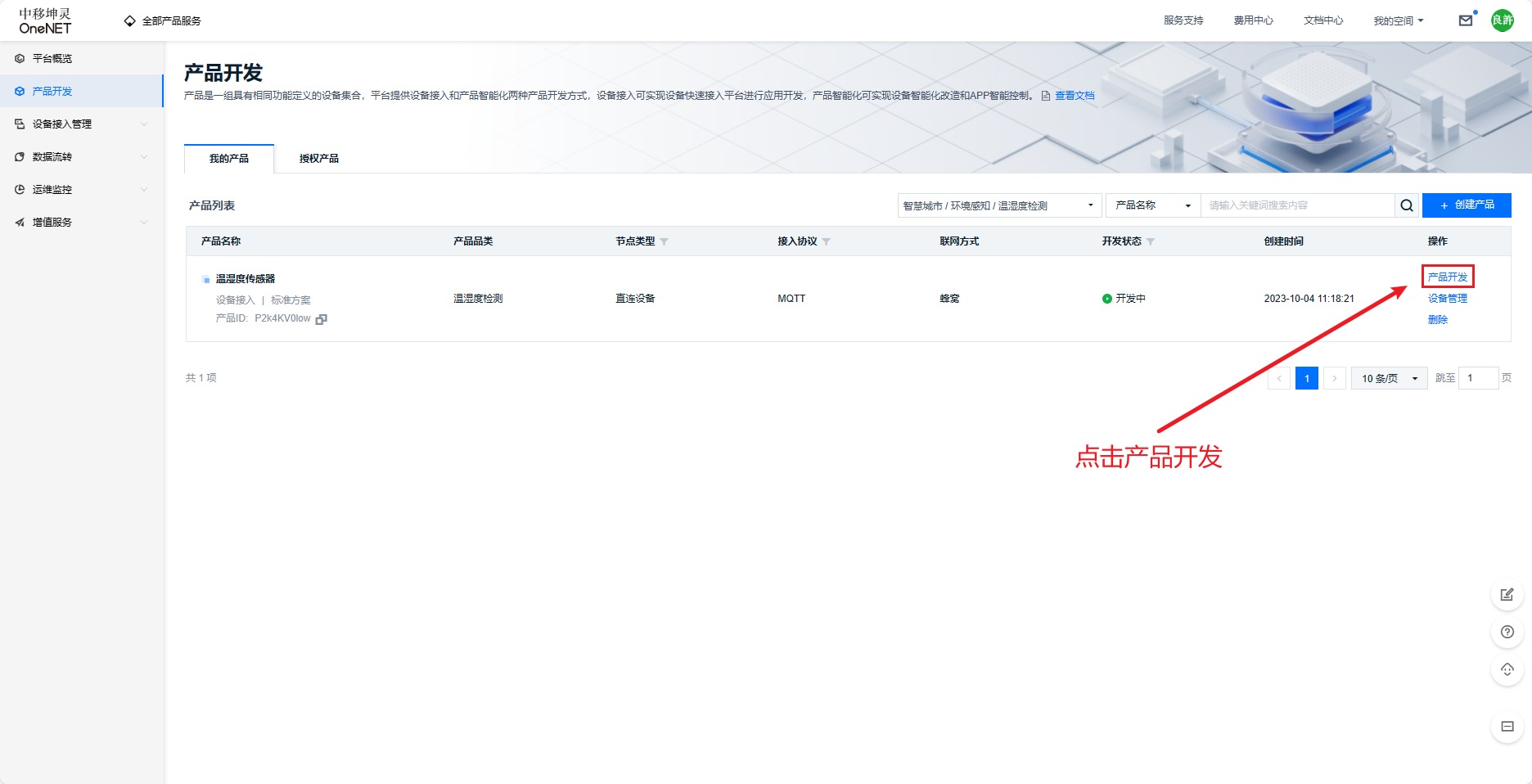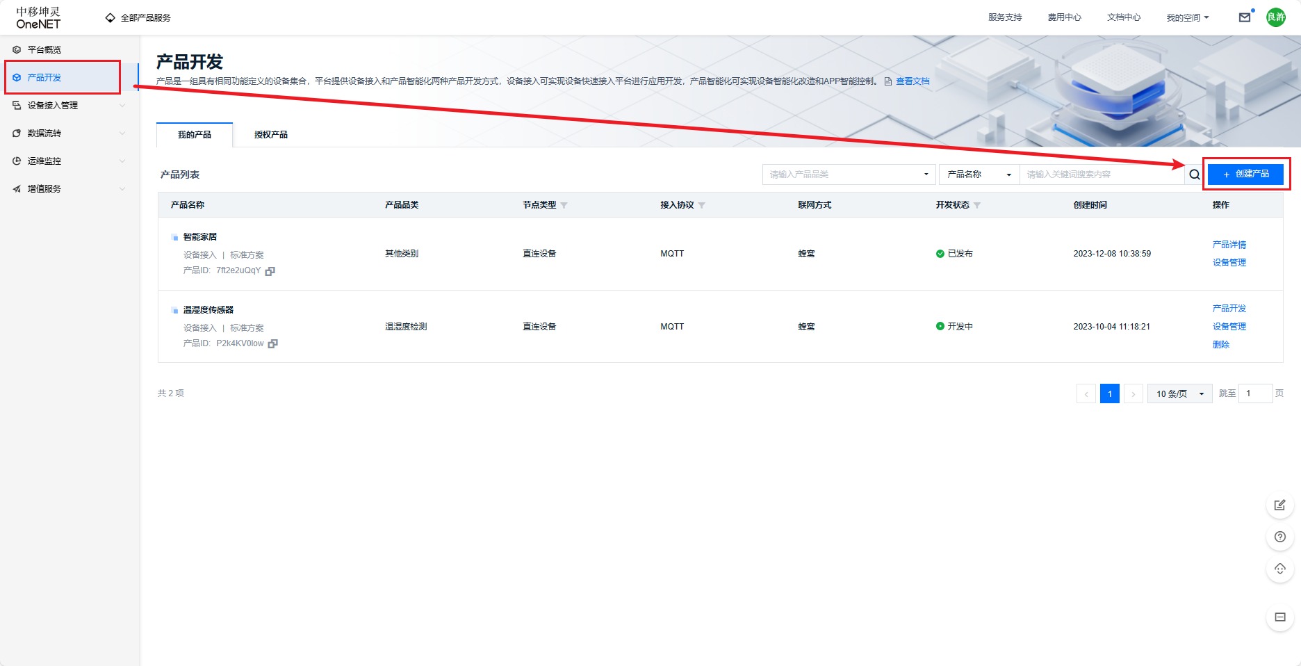 接下来我们先创建一个产品,之后再创建具体的设备。