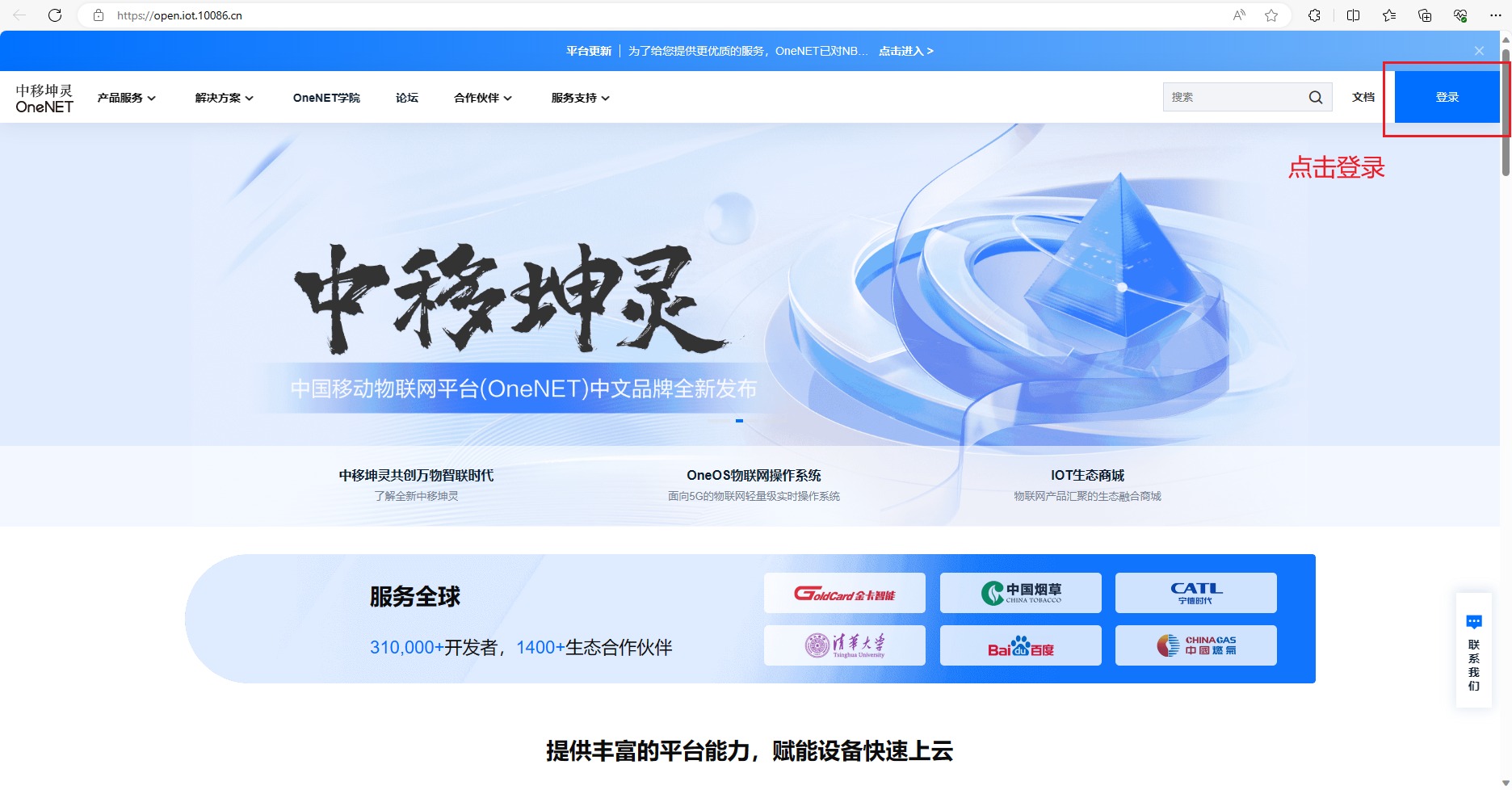 点开 OneNET 官方网址:中移坤灵 - 中国移动物联网开放平台 (10086.cn)