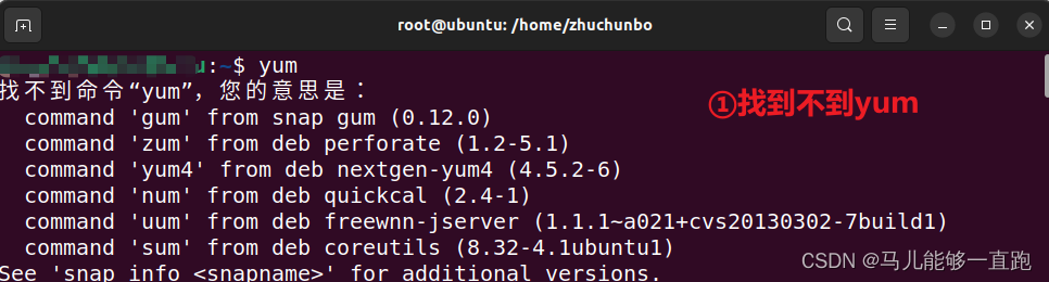 主要参考文章:(74条消息) Ubuntu中显示yum命令找不到_ubuntu yum not found_sinat_40482939的博客-CSDN博客