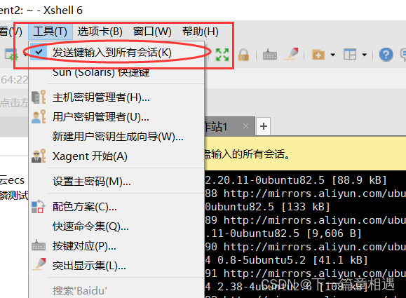 这样子就可以看到,只需要对一台设备进行输入指令另外一台可以进行同步,这样子配置多台服务器,进行同步搭建,直接事倍功半!