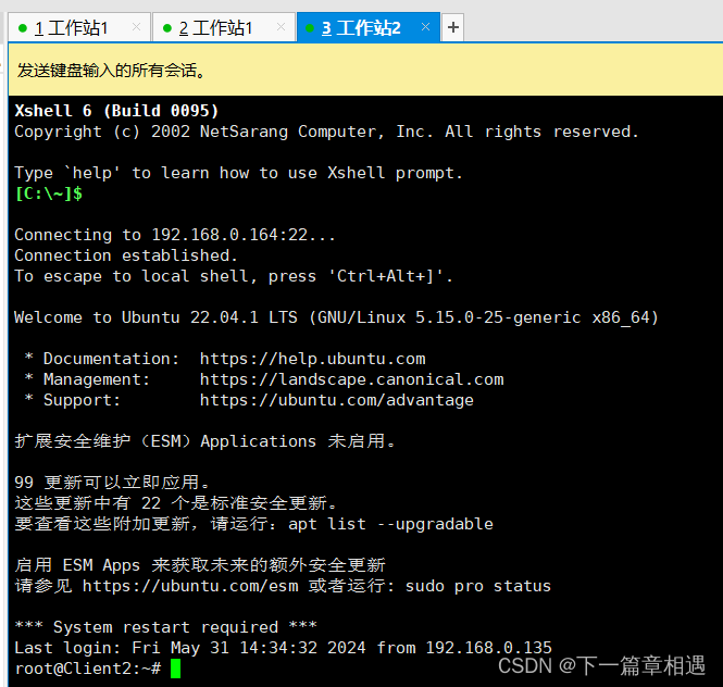 修改配置文件之后需要使用netplan apply重置网卡 需要使用Xshell远程进行连接之前需要安装ssh服务