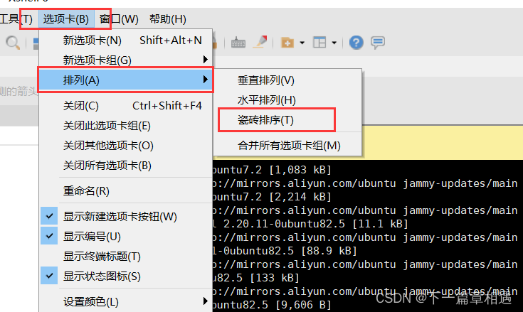 连接好之后找到选项卡排序,使用瓷砖排序最佳