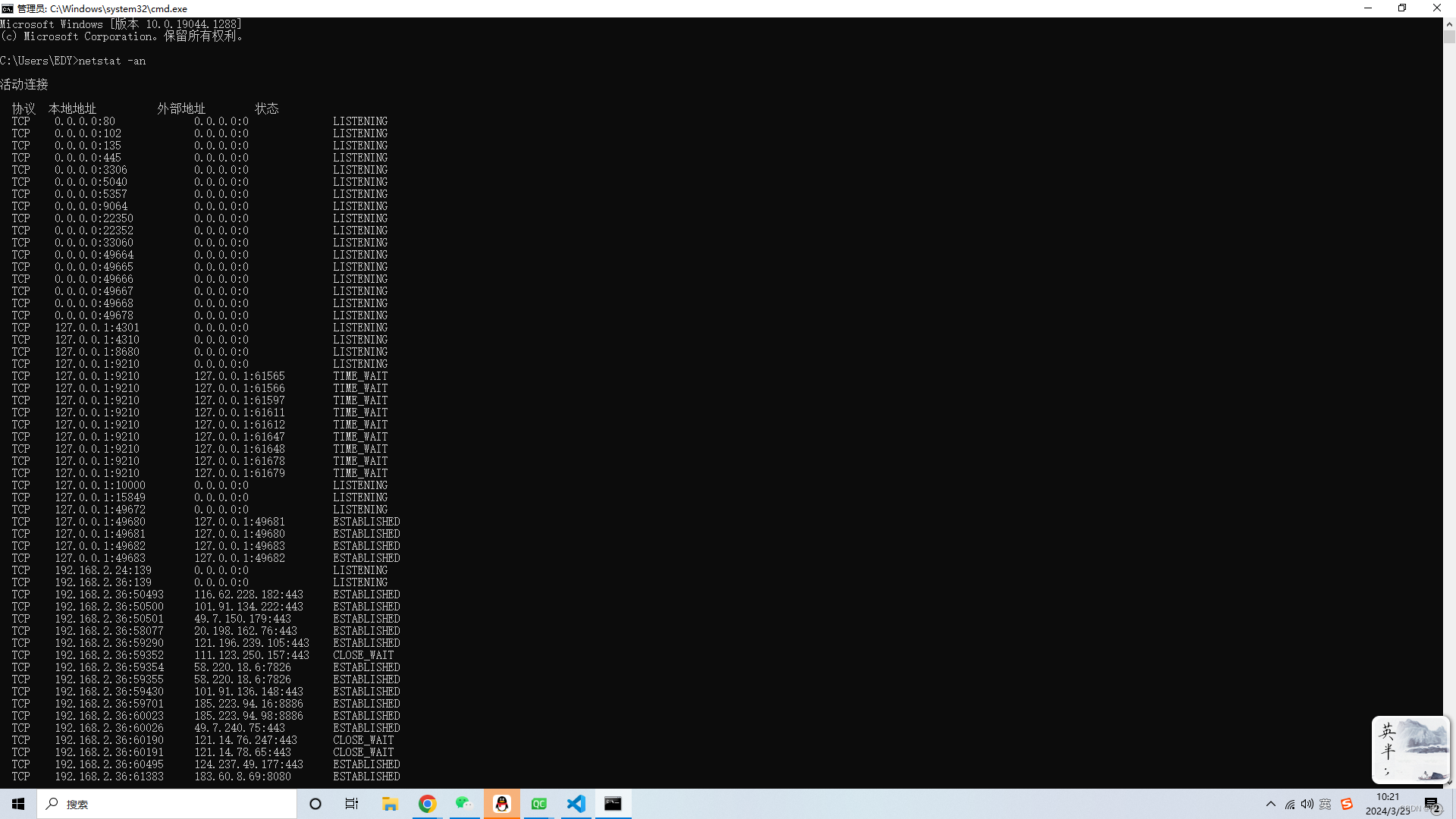 监听的地址设置所有即可访问你电脑可以收到的所有地址,可以用win+R进入cmd查看有哪些,比如: