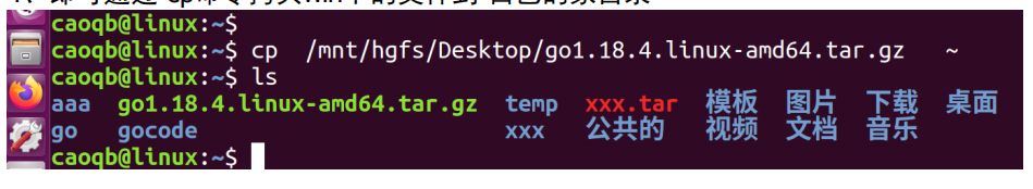 4、即可通过 cp命令拷贝win下的文件到 自己的家目录