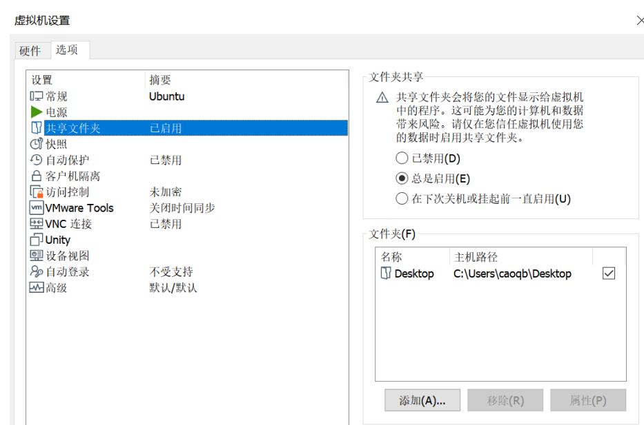 2、切换到选项,找到共享文件夹,并在右侧添加共享文件