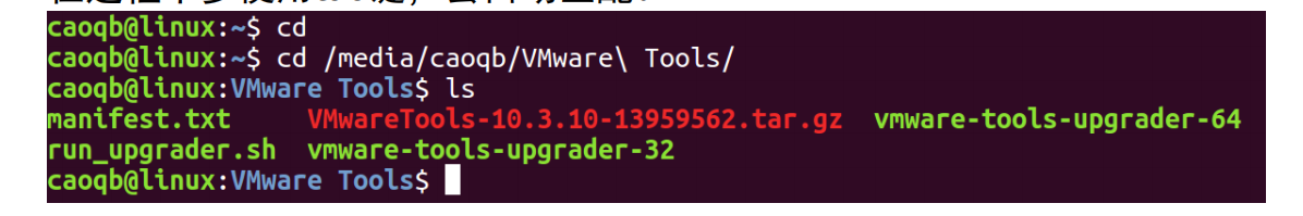 3、在命令提示符上 cd /media/xxx/vmware tools 光盘