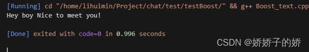 #include #include #include using namespace std; class Hello{ public: void say(string name) { cout << name << "Nice to meet you!" << endl; } }; int main() { Hello h; auto func=boost::bind(&Hello::say,&h,"Hey boy "); func(); return 0; } 如果打印结果: