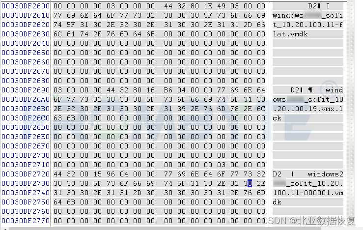 2、基于备份文件分析VMFS卷的底层数据,服务器非正常断电导致故障虚拟机目录下的目录项破坏,这种破坏只是破坏了文件的目录项,不会影响虚拟机的重要数据,可以通过人工修复解决。