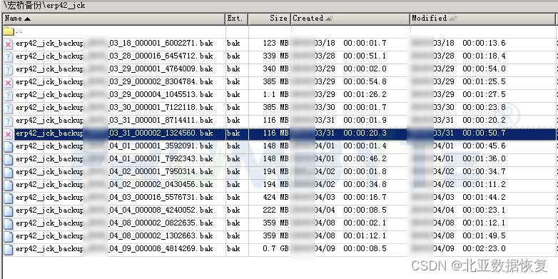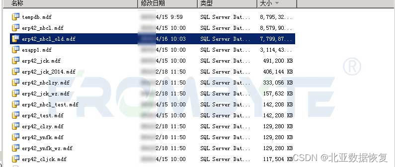 4、方案B:由于实施方案一并没有将原始的数据库文件成功恢复,而且很多备份文件都无法正常使用。北亚企安数据恢复工程师只能采用方案B来恢复方案A中尚未恢复的数据库文件。