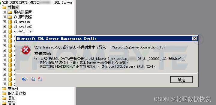 5、方案B:方案A和方案B的实施并没有将所有的数据库文件全部恢复出来。cl_system3.dbf和erp42_jck.dbf这2个文件因缺失部分页导致其无法正常使用,可以尝试通过备份来恢复这两个数据库文件,但是在检查后发现cl_system3.dbf没有备份,而erp42_jck.dbf只有最近一个月的全部增量备份。