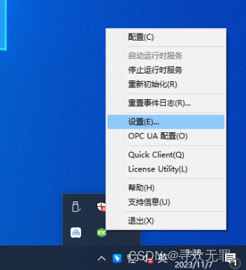 回到桌面任务栏,继续右击运行图标,打开OPC UA配置---服务器端点---双击黑色的服务器端点